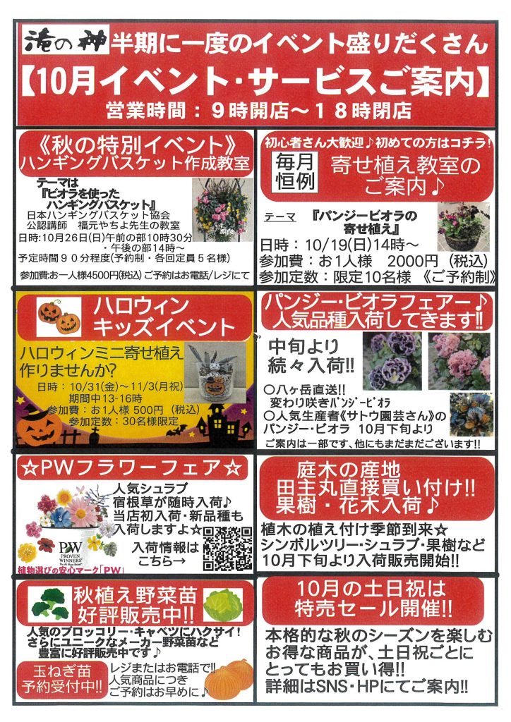 10月は、ハンギング教室やハロウィンキッズイベントなど