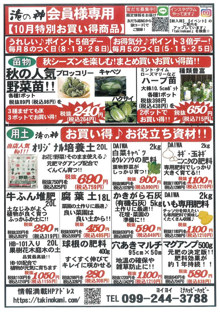 ●2025年10月【カード会員様お買い得商品&イベント・サービス】のご案内♪