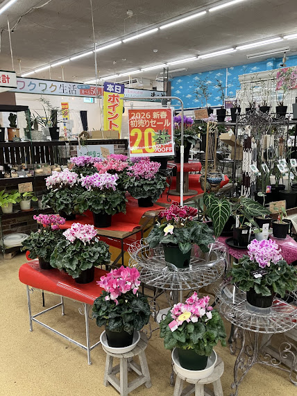 ☆シクラメン均一セール開催!! 2026/01/09 シクラメン花鉢均一セール開催!! 通常5000円以上のシクラメンが なんと、税込3300円均一🎵 キレイな変わり咲きのシクラメンや 高級シクラメンが、とってもお買い得なセールです☆