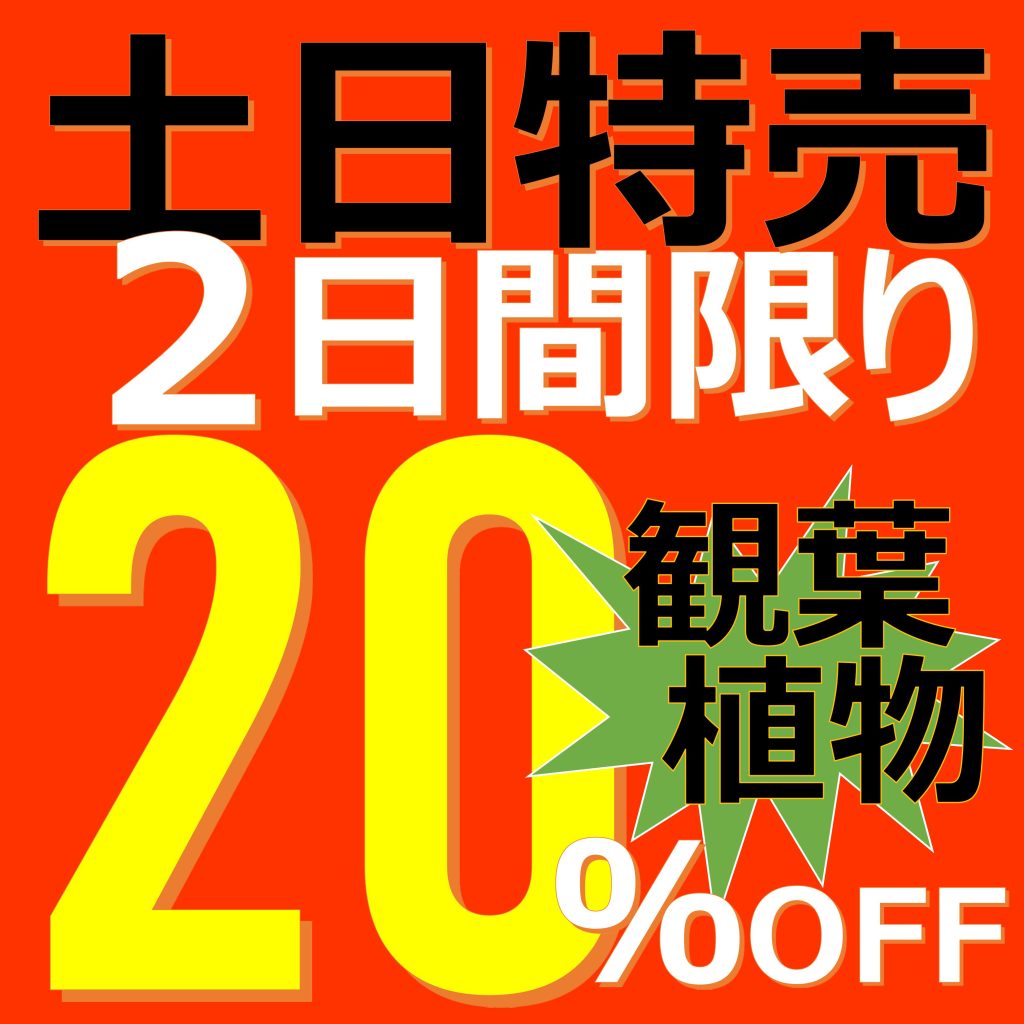 今週のお得な土日特売!! 2025/10/17 今週の土日特売は、 観葉植物全品20%引きセール!! さらに 〇観葉植物の土を同時購入で10%引き 〇植替え用の鉢も同時購入で10%引き お買い得な二日間、ぜひご利用ください♪ ご来店お待ちしております。